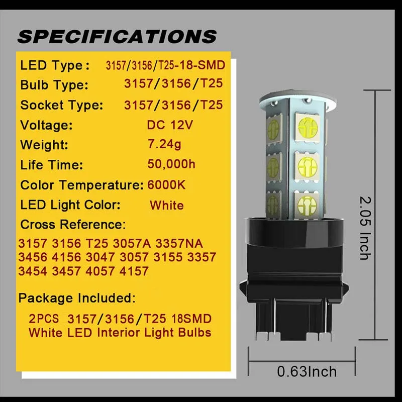 | 2Pcs T25 3156 3157 LED Bulb Super Bright White 18SMD Signal light Car Running Light Tail Stop Reverse Backup Led Brake Lamp |