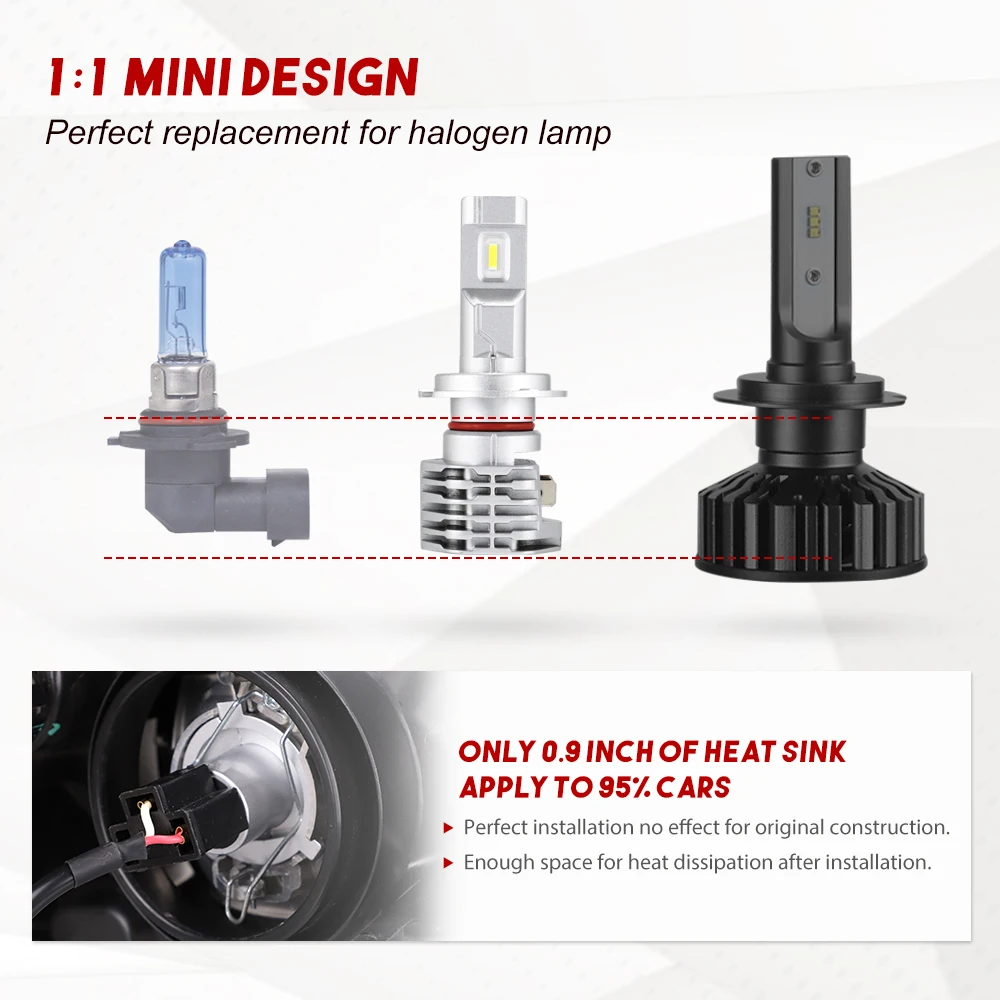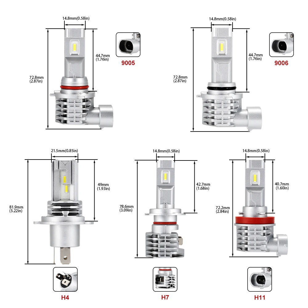 | 1pair Mini Design Car Headlight LED Bulbs Lamps H4 H7 H11 9005 9006 HB3 HB4 LED Fog Lights 50W 8000LM 6000K White |