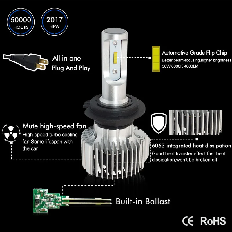 | Safeview Car LED d1s d2s d3s d4s headlight auto low beam 36W with Flip Chips 4000LM 6000K car styling lampadas de led para carro |