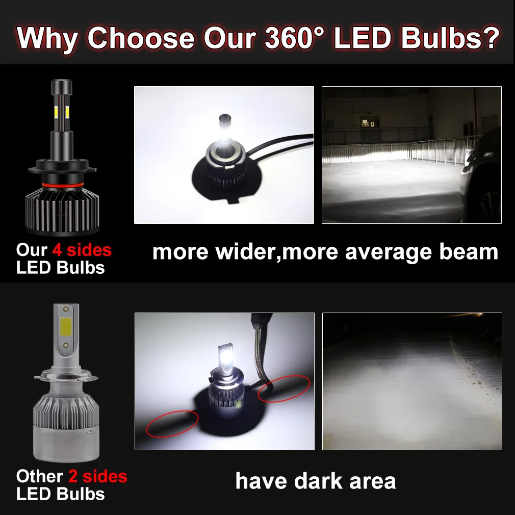 Best Price Comparison With 4 Sides CSP H4 LED Bulb H7 Led Canbus H8 H11 9005 HB3 9006 HB4 Car Headlight 360 degree 60W 15000LM 6000K White Auto Turbo Light